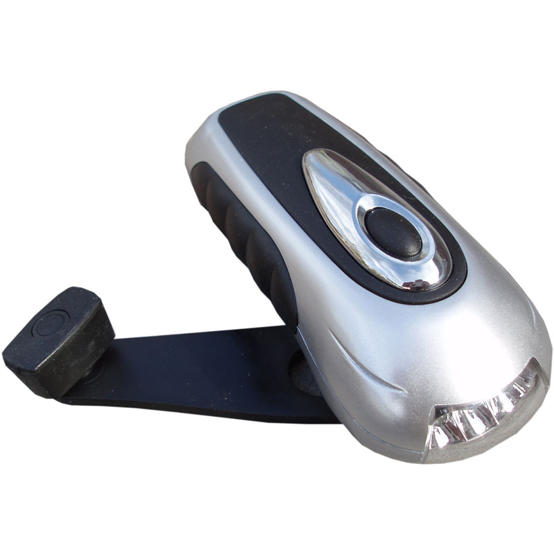 Emergency Zone Dynamo FlashlightDon’t get caught in an emergency without being prepared! Disasternecessities presents the high quality, low price Emergency Zone Dynamo Flashlight that provides you with protection, safety, and security. This 3 LED Dynamo Flashlight never needs batteries. Turn on either 1 LED or 3 LEDs for just the amount of light you need. Turning the hand-crank for 1 minute offers 30 minutes of light. This flashlight uses a rechargeable Ni-MH cell: 3.6V, 80mAH. Under normal conditions, Ni-MH batteries can be recharged fully 500 times. Earthquake – Tornado – Hurricane – Tsunami - Fire – Terror – Flood – Zombie Apocalypse Are you prepared?