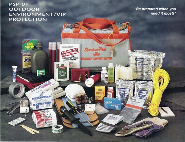 Survivor Outdoor Support Unit Emergency Survival 72 Hour Kit for 2 PeopleThe whole thing started right here with this kit, our first ever kit. How do you help 2 people in the wilderness stay alive when they are alone? CONTENTS Radio, Bicarbonate of Soda, Candles, Case, Tape, Blankets, Flares, Firesticks, Flashlights, Mainstay Food Calorie Bars, Infectious Waste Bags, Matches, Mirror, Pencil, Paper, Playing Cards, Pliers, Rope, Screwdriver, Knife, Tissue, Usage Card, Utility Bags, Water Purification Tablets, Mainstay Water Rations, Watertight Container, Whistle and some heavy duty Work Gloves, plus a Medical First Aid Kit. CAN BE IMPRINTED WITH YOUR COMPANY NAME AND LOGO! See Also