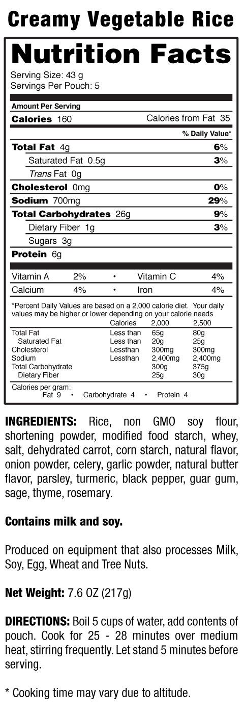 Feel full and refreshed with vegetables and rice served up in our delectable creamy soup. Each box contains 25 pouches; 5 servings per pouch. Earthquake – Tornado – Hurricane – Tsunami - Fire – Terror – Flood – Zombie Apocalypse Are you prepared?